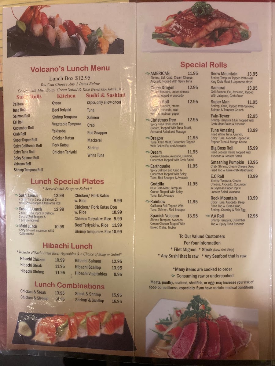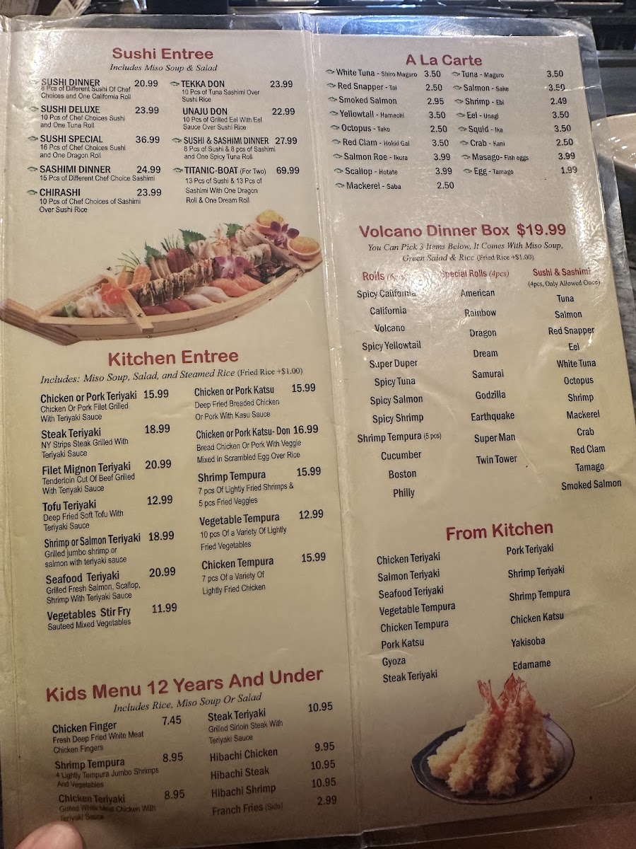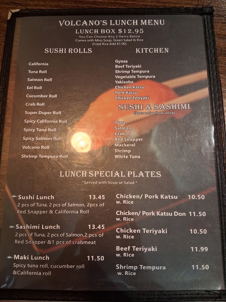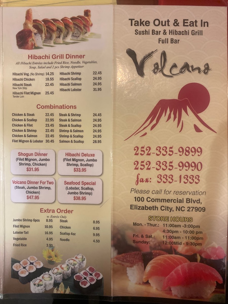 Volcano offers a thoughtfully curated menu that blends the art of Japanese tradition with the lively experience of hibachi and grill dining. The selection strikes a balance between familiar favorites and expertly crafted dishes, inviting guests to enjoy a relaxed meal whether for lunch, dinner, or a casual gathering. From freshly prepared sushi rolls like the Tuna Roll and Spicy Trio to hearty grill options such as Bourbon Chicken and Beef Skewers, the menu suits a variety of tastes and occasions.